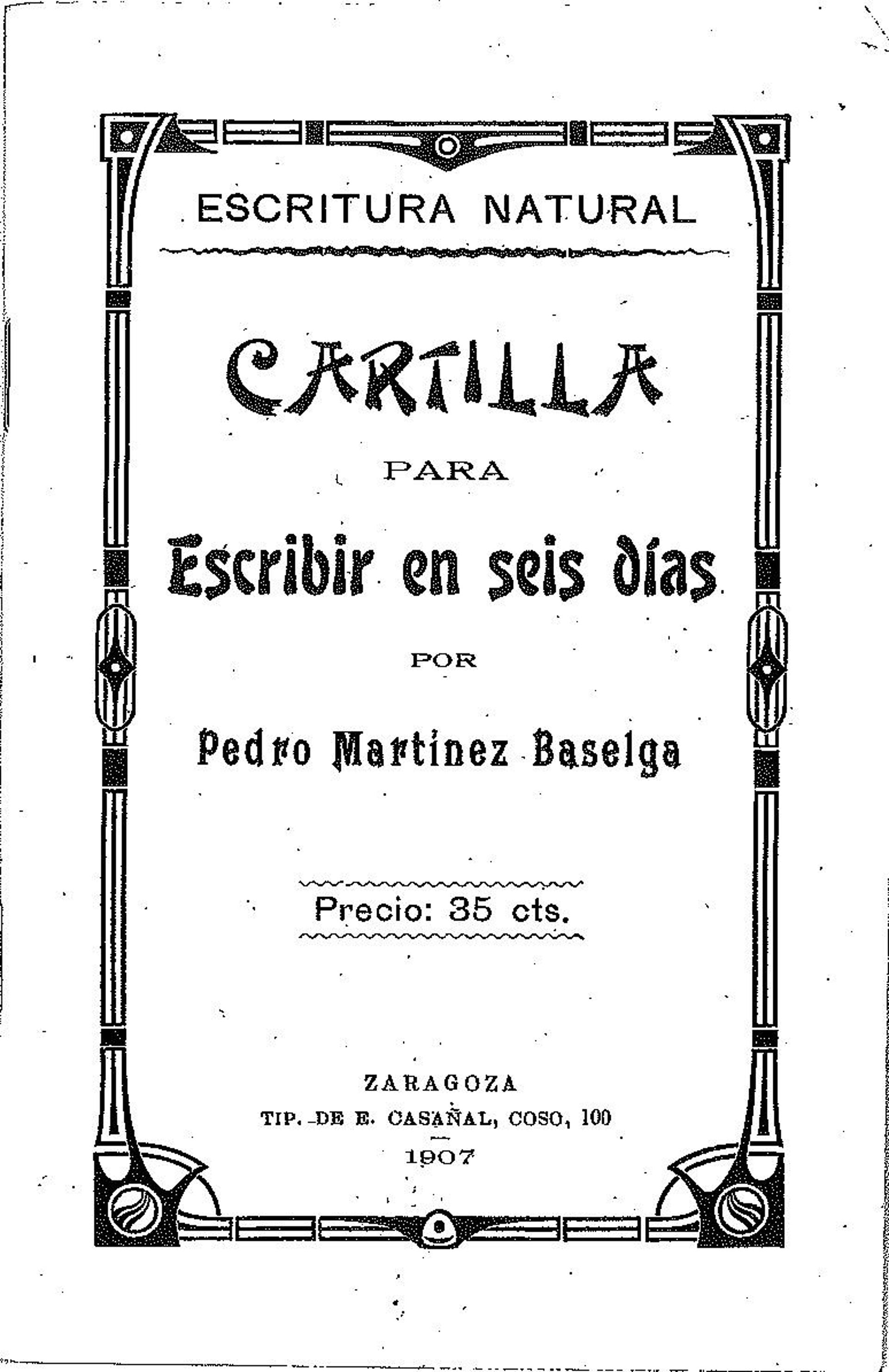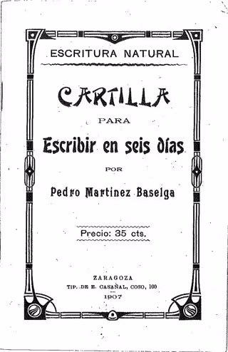 "Añadiendo rayas al cero podemos formar varias letras y con éstas algunas palabras". Con este truco comienzan las lecciones en la Cartilla Caligráfica para aprender a escribir en seis días. Se trata de un pequeño libreto que publicó el zaragozano Pedro Martínez Baselga para enseñar a la población de la época a escribir a través de un sencillo método.