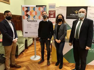 Los directores técnicos del Festival Vocal Saulus, Jorge Apodaca y Elena Ruiz-Ortega, el gerente de Zaragoza Cultural, David Lozano, y el director de Comunicación de Caja Rural de Aragón, José Antonio Artigas, presentan este nuevo evento cultural. - FESTIVAL VOCAL SAULUS