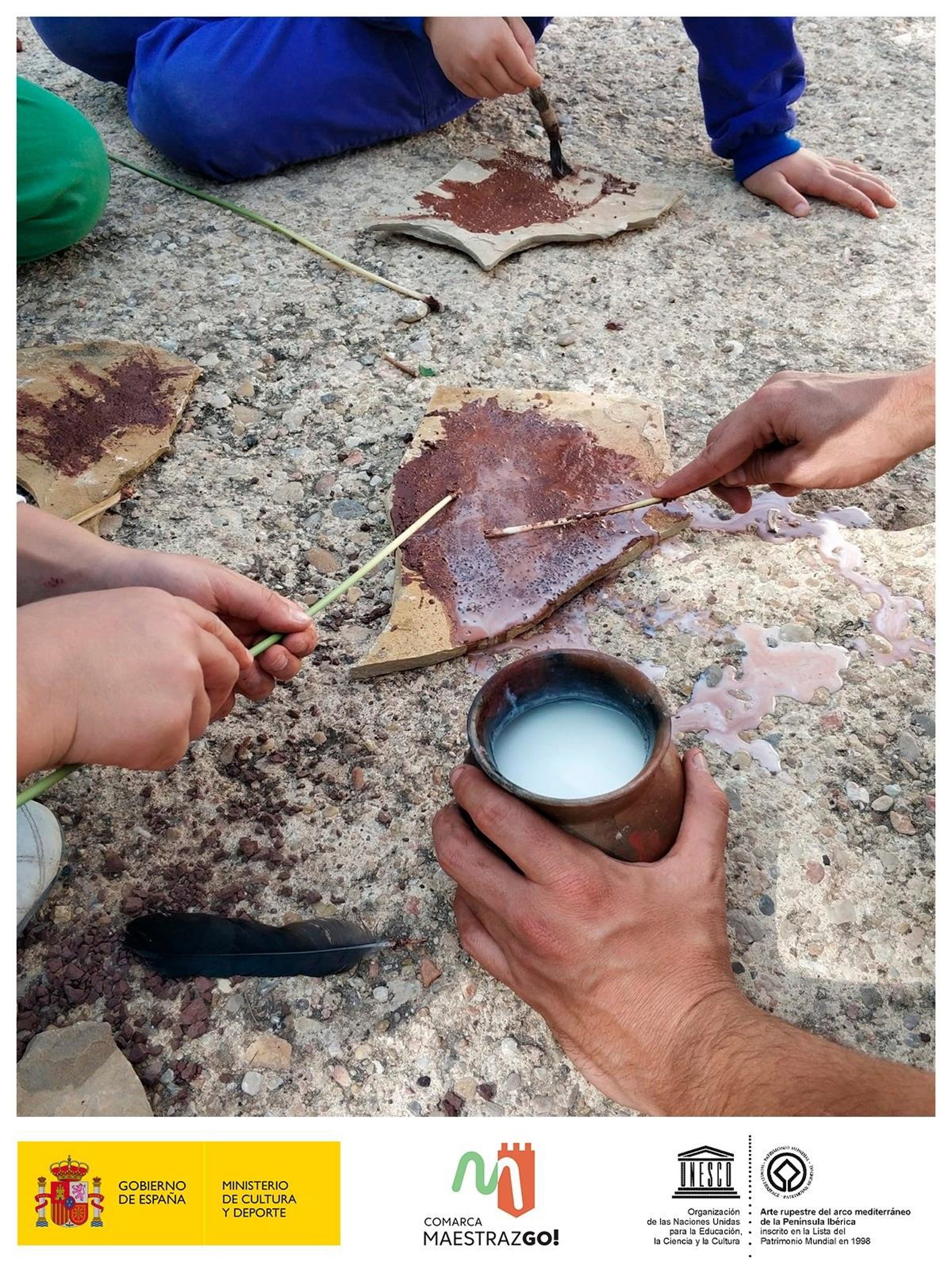En estas jornadas, los participantes han elaborado pigmentos y creado sus motivos sobre la piedra, y no solo durante la actividad, porque sus juegos en los recreos escolares han cambiado y ahora se convierten por unos minutos en los antiguos pobladores del Maestrazgo.