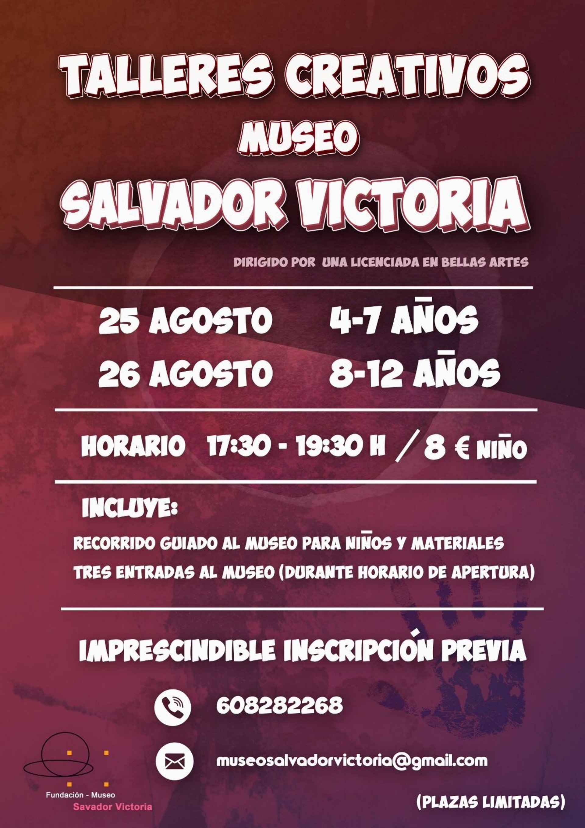 En el caso de los talleres infantiles hay plazas limitadas y es necesaria inscripción previa, que puede realizarse mediante correo electrónico en museosalvadorvictoria@gmail.com, como por vía telefónica en el 608282268.