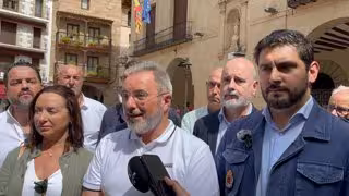 Nolasco ha comparecido este sábado en la plaza del Ayuntamiento de Mora de Rubielos tras prohibir la Subdelegación del Gobierno en Teruel la manifestación convocada por VOX para expresar su rechazo a la llegada de esos migrantes.