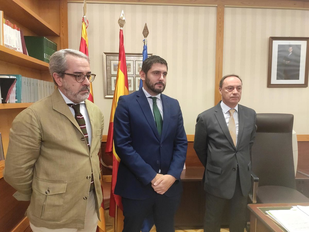 El decano del Colegio de Procuradores de Zaragoza, Pablo Marín, el vicepresidente primero del Gobierno de Aragón, Alejandro Nolasco, y el decano del Colegio de Abogados de Zaragoza, Antonio Morán. - EUROPA PRESS