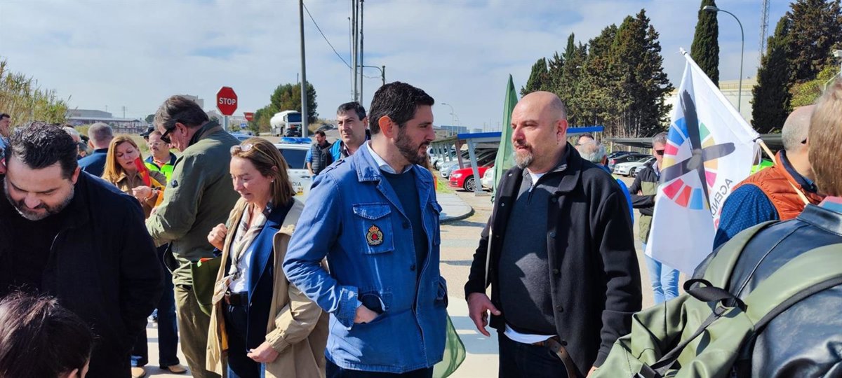 El portavoz de Vox en las Cortes de Aragón, Alejandro Nolasco, en la manifestación de agricultores contra la subida de los hidrocarburos, junto a otros diputados de la formación y el secretario general del sindicato Solidaridad, Jordi de la Fuente. - EUROPA PRESS