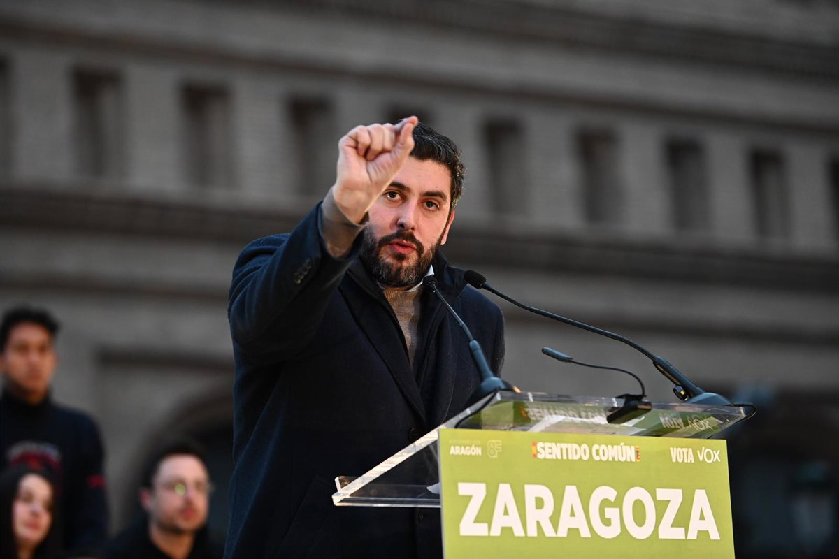 El candidato de Vox a la presidencia del Gobierno de Aragón, Alejandro Nolasco, ha afirmado este viernes, en el mítin de fin de campaña electoral, en la plaza del Pilar de Zaragoza, que faltan "48 horas para aplicar la Ley de Extranjería" a los inmigrantes ilegales y darles el "billete de vuelta".