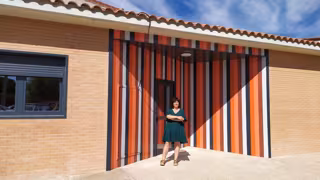 La alcaldesa de La Almunia, Marta Gracia, ante la nueva escuela infantil. - AYUNTAMIENTO.