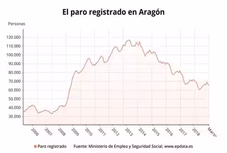 Las cifras en Aragón representan el mayor descenso para un mes de marzo en los últimos 20 años. Desde julio de 2015, el paro registrado ha disminuido un 28,75 por ciento, al pasar de 91.804 a 65.412 personas.