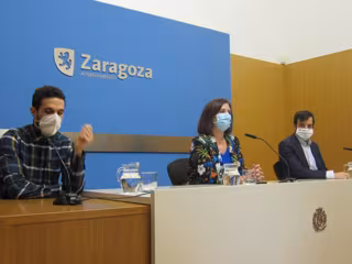 La vicealcaldesa y consejera municipal de Cultura y Proyección Exterior de Zaragoza, Sara Fernández; el director gerente de la sociedad municipal Zaragoza-Cultura, David Lozano; y el responsable de desarrollo de la empresa tecnológica Imascono, Héctor Paz, han presentado la web desde la que se podrá realizar la ofrenda de flores virtual como alternativa a la presencial suspendida para evitar contagios de COVID-19 y al entrar Zaragoza en Fase 2 a partir de este jueves, 8 de octubre.