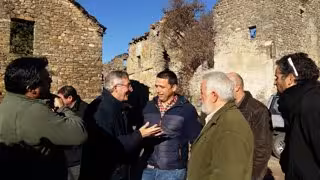 El consejero de Desarrollo Rural y Sostenibilidad del Gobierno de Aragón, Joaquín Olona, acompañado por la directora del Instituto Aragonés del Agua, Inés Torralba, ha visitado Jánovas para mostrar el compromiso del Gobierno de Aragón por agilizar el proceso administrativo en la reversión de las propiedades y en la recuperación de su entorno.