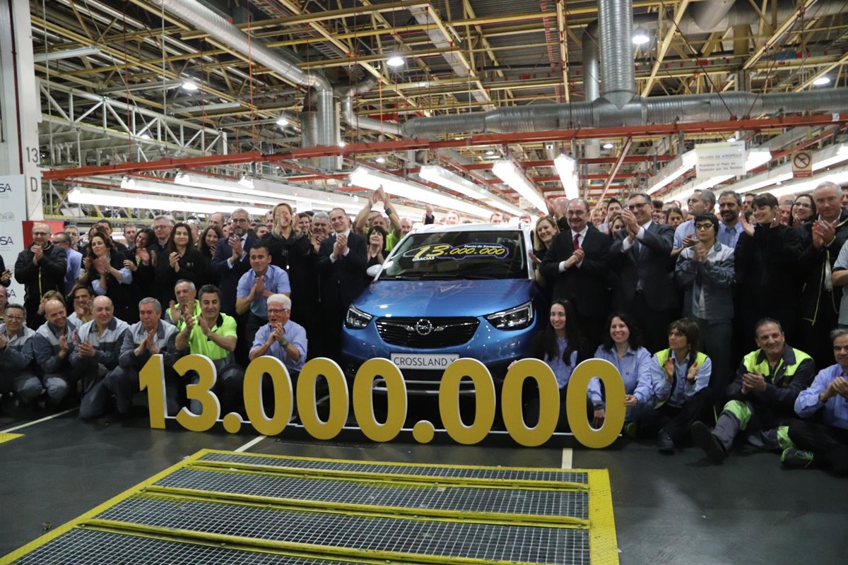 La planta zaragozana de Opel/PSA de Figueruelas ha alcanzado este jueves los 13 millones de unidades fabricadas. El coche de esta celebración ha sido un Opel Crossland X bitono, en colores azul bay y blanco, que será exportado a Marruecos. El destino de este vehículo refleja la implementación de la ofensiva exportadora de la firma hacia mercados no europeos, como parte de la estrategia que recoge el plan PACE!.
