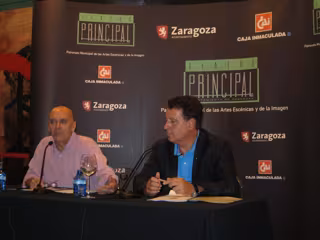 El consejero municipal de Cultura, Educación, Medio Ambiente y Participación Ciudadana del Ayuntamiento de Zaragoza, Jerónimo Blasco, y el director del teatro Principal, Rafael Campos, han presentado este jueves en rueda de prensa la programación para los próximos meses en el Principal, que ha cerrado la temporada entre los meses de enero y julio con 105.000 espectadores que han disfrutado de 165 representaciones de 68 compañías.