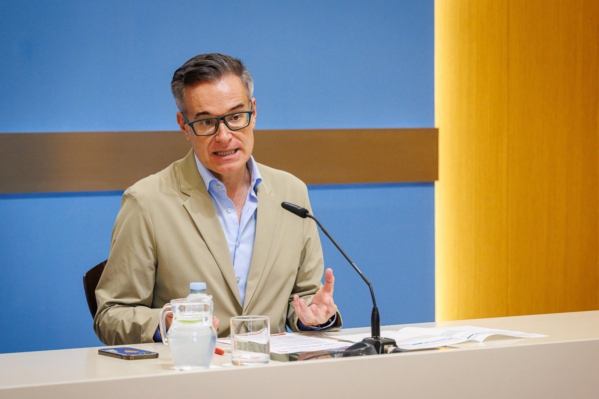 El consejero municipal de Urbanismo del Ayuntamiento de Zaragoza, Víctor Serrano, en rueda de prensa. - DANIEL MARCOS