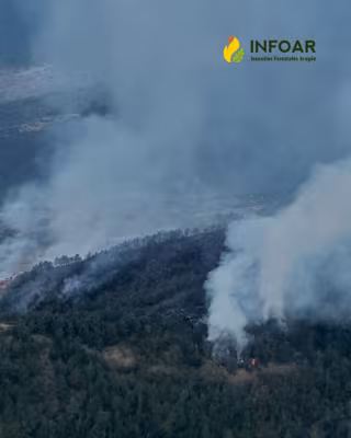 El operativo de lucha contra incendios forestales 'INFOAR' del Gobierno de Aragón trabaja en sofocar un fuego declarado esta pasada medianoche entre los términos municipales de Aragüés del Puerto y Valle de Hecho (Huesca), en la zona de las peñas de Larraz.