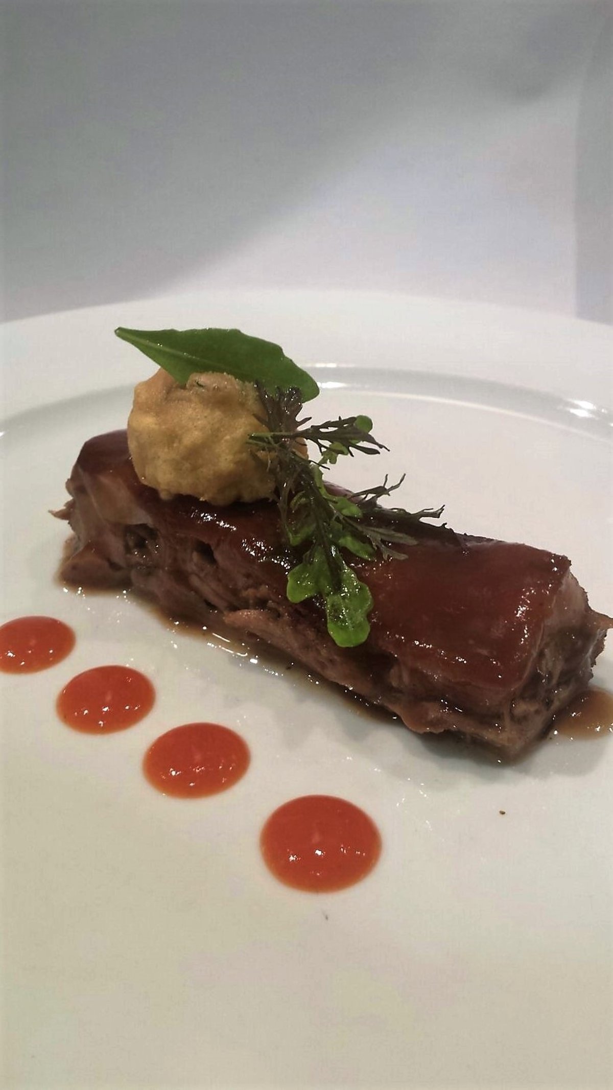 "Es muy laborioso, ya que hay que preparar la careta bien cocida y la lengua estofada a lo largo de las cuatro horas de las que disponemos para elaborar el plato", ha explicado Óscar Viñuales, para opinar que "es arriesgado, pero lo teníamos muy claro porque el resultado es fantástico".