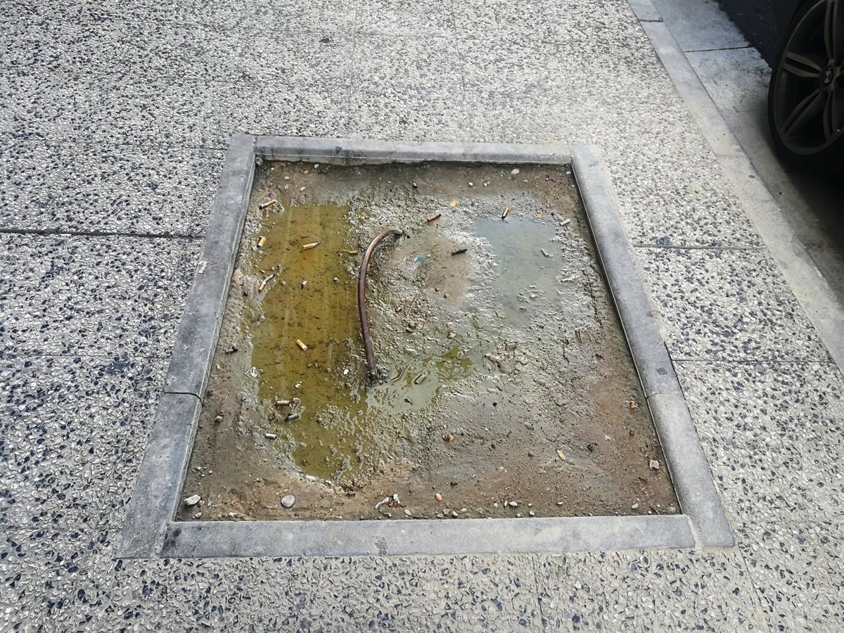 Además, algunos de estos alcorques mantienen sus mangueras de riego subterráneo por encima de la superficie de manera inusual, de forma que forman auténticas trampas para los peatones que transitan por esta populosa calle, sobre todo para las personas más mayores o con movilidad reducida.