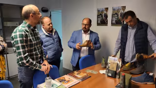 En Illueca se ha reunido con la Asociación de Fabricantes de Calzado y ha conocido la situación del sector. Ha brindado su colaboración a estos empresarios para mantener su producción y buscar nuevas vías de negocio.
