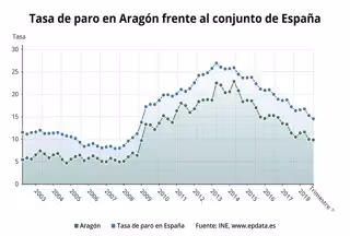 En términos interanuales, el descenso del paro se ha situado en 3.400 personas menos, lo que supone un 5,03% menos respecto al mismo trimestre del año anterior, por lo que la tasa de desempleo en la comunidad aragonesa ha sido de un 9,87%. El número de ocupados se ha colocado en 580.100, siendo la tasa de actividad de un 58,79%.