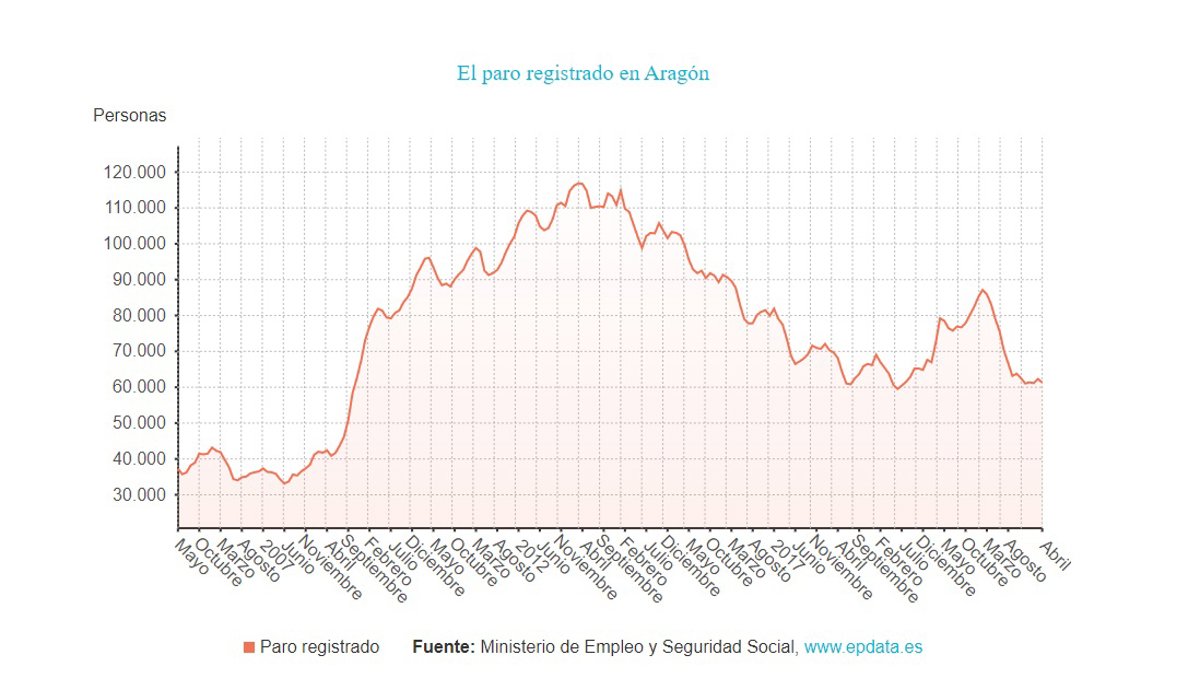 El paro baja en 993 personas, en Aragón, en abril, el 1,59% sobre el mes anterior. - EPDATA