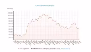 El número de parados registrados en Aragón ha bajado en 993 en abril, el 1,59 por ciento sobre el mes anterior, situándose la cifra total de desempleados en esta comunidad autónoma en 61.310, según datos publicados este miércoles por el Ministerio de Trabajo y Economía Social.