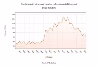 El paro bajó en 9.600 personas en el segundo trimestre del año en Aragón, lo que supone un descenso del 13,02 por ciento con respecto al trimestre anterior, una bajada del 12,75 por ciento en tasa interanual, con 9.300 parados menos, y deja la cifra total de desempleados en 63.900 personas, según la Encuesta de Población Activa (EPA) publicada este jueves por el Instituto Nacional de Estadística.
