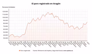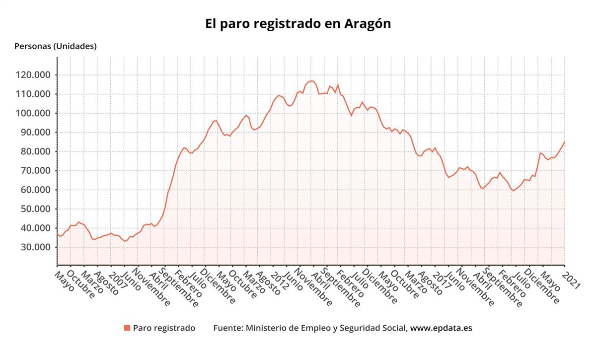 Paro registrado en Aragón en enero de 2021. - EPDATA