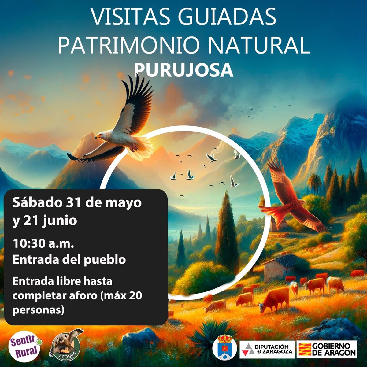 Cartel de las visitas guiadas "Ganadería extensiva y naturaleza" en el Parque Natural del Moncayo - SENTIR RURAL Y ACOBIJA CONSERVACIÓN