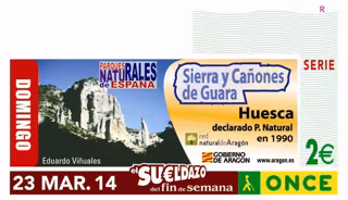 El Parque Natural de Sierra y Cañones de Guara protagoniza el cupón de la ONCE de este domingo, día 23 de marzo. Cinco millones y medio de cupones llevarán por toda España este paraje natural.