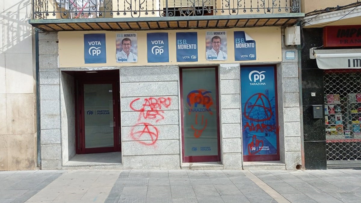 El PP de Tarazona (Zaragoza) ha comunicado este sábado, 26 de agosto de 2023, que la sede local de la formación política ha amanecido esta mañana dañada por diferentes pintadas con insultos.
