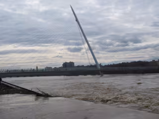 Crecida del Ebro con la pasarela del Voluntariado de fondo - EUROPA PRESS - Archivo