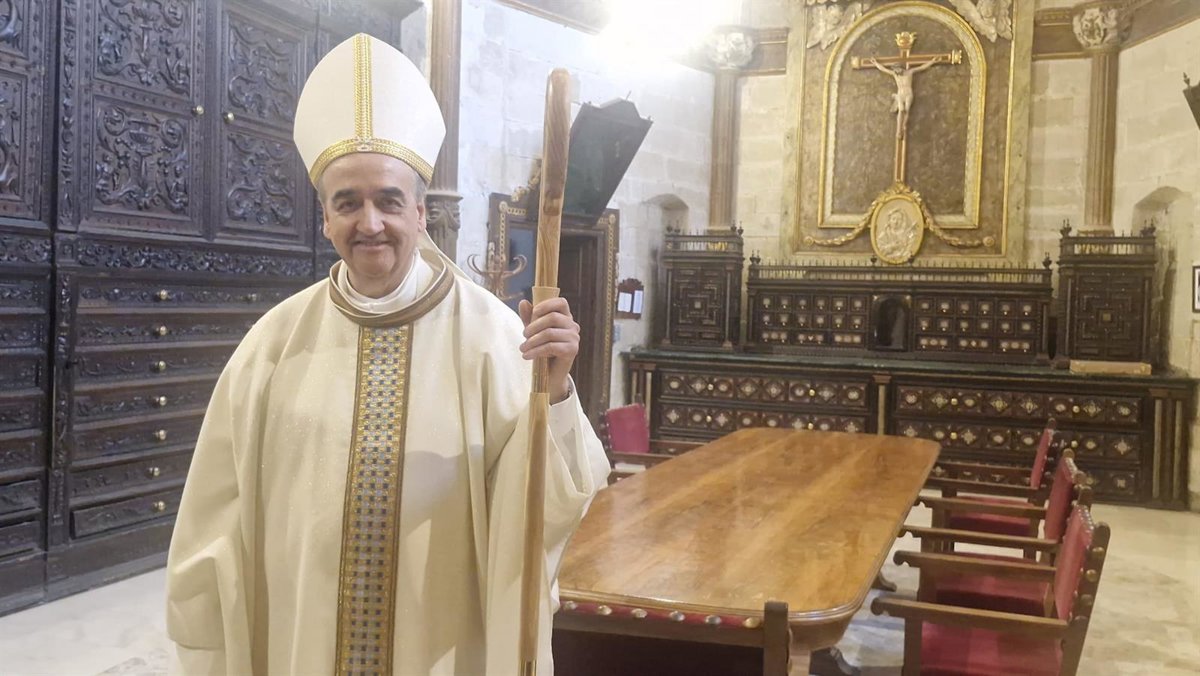 El deán de la Catedral, el reverendo Juan Carlos Barón, y miembros del Cabildo catedralicio le ha ofrecido el 'lignum crucis' para que lo besase y ha entregado al obispo electo el hisopo con agua bendita para que se asperjase a sí mismo y a los presentes.