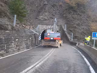 Personal de Carreteras del Estado se encuentran trabajando sobre el terreno para restablecer plenamente el tráfico a la mayor brevedad posible en la N-260 tras el desprendimiento este sábado de rocas en la boca del túnel de Gavín, que da acceso al puerto de Cotefablo (Huesca).
