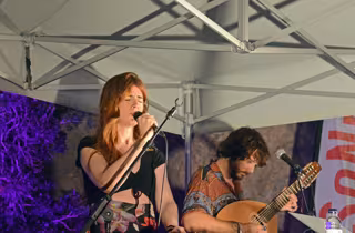 María Rodés e Idoipe en una de los pocos temas que pudieron compartir ambos sobre el escenario de Alquézar a causa de la lluvia en la primera jornada del SoNna 2025 - SONNA