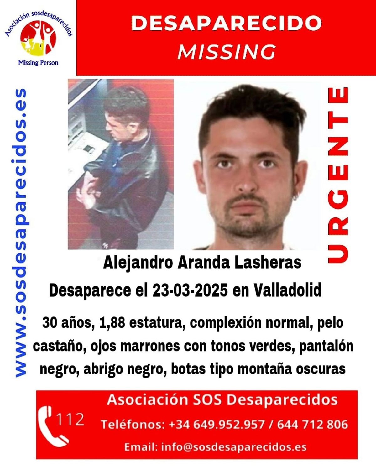 "Se ruega a quienes puedan aportar información relevante que contacten con la Asociación SOS Desaparecidos a través de los teléfonos 649 952 957 y 644 712 806", concluye el comunicado.