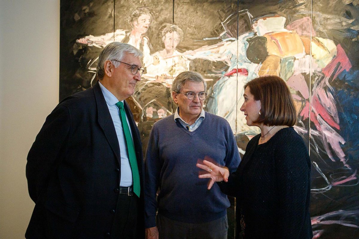 La vicealcaldesa y consejera de Cultura y Proyección Exterior del Ayuntamiento de Zaragoza, Sara Fernández; el presidente de la Real Academia de Nobles y Bellas Artes de San Luis, Domingo Buesa, y el artista Fernando Alvira - @DANIMARCOSFOTO / DANIEL MARCOS
