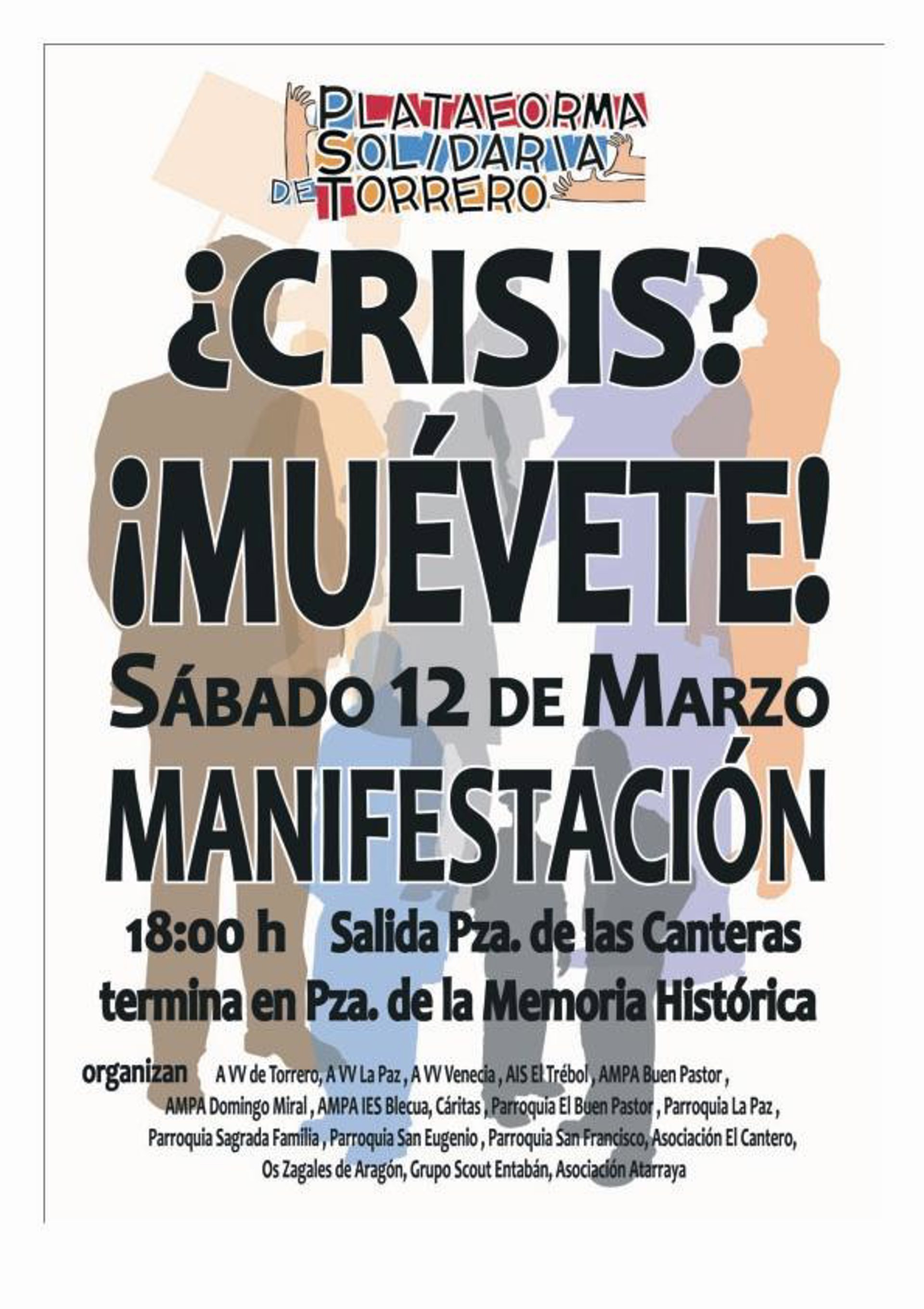 La Plataforma Solidaria de Torrero ha convocado una manifestación para este sábado, 12 de marzo, para protestar por los efectos de la crisis en las numerosas familias de este barrio de la ciudad.