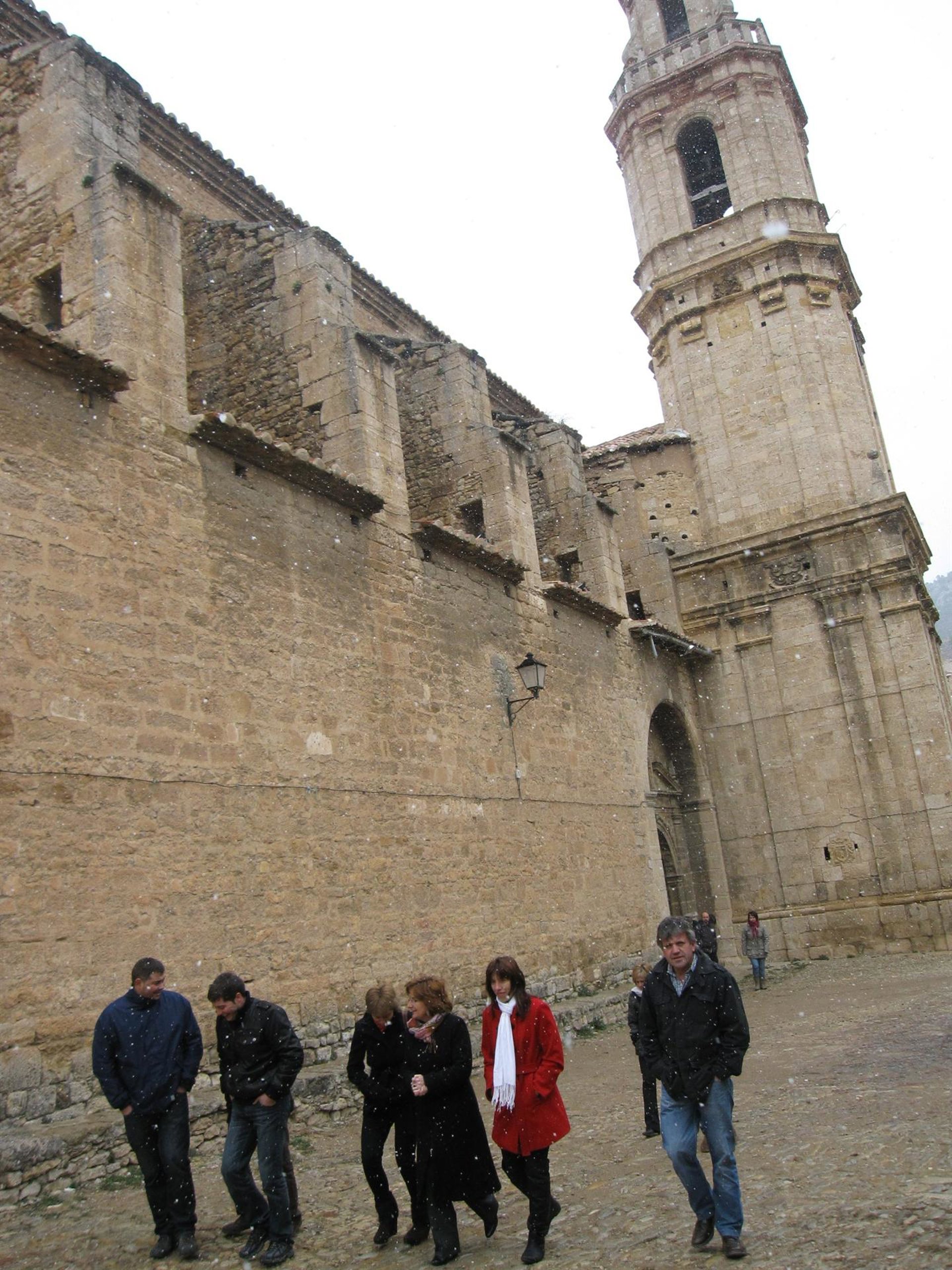 En Tronchón, Broto, junto con la subdelegada del Gobierno en Teruel, María Victoria Álvarez, ha conocido el proyecto para la restauración de la plaza de la iglesia, un proyecto financiado dentro del 1% cultural del Ministerio de Fomento.