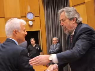 "Me gustaría decirle al alcalde que "ha sido un placer, pero nadie me creería", ha bromeado Suárez para confiar en que con Belloch, a partir de ahora, "tendremos buena relación, y aunque, quizá, no se han dado las circunstancias le deseo que en sus nuevas funciones lo haga lo mejor que pueda porque falta hace en este país impartir buena justicia".