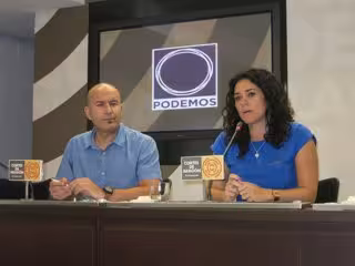 Los diputados de Podemos Erika Sanz y Carlos Gamarra han comparecido en rueda de prensa para pedir al Gobierno de Aragón que presente en la Comisión de Hacienda del Parlamento autonómico estos expedientes de anticipo de gasto, como está haciendo para otras obras, "antes de que se cierre el Presupuesto de 2017".