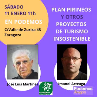 Podemos Aragón organiza este sábado en su sede de Zaragoza la charla 'Plan Pirineos y otros proyectos de turismo insostenible', en la que denunciará este proyecto por utilizar unos fondos europeos destinados inicialmente a adaptar la economía para las nuevas generaciones ante el reto del cambio climático para "engordar algunos pocos bolsillos" de "amigos" del presidente del Gobierno de Aragón, Jorge Azcón.
