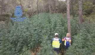 Agentes de la Policía Nacional, en el marco de las investigaciones de la operación 'Copitos', han desmantelado una nueva plantación de marihuana en los bosques de Huesca. En esta ocasión, se han aprehendido 7.828 plantas en los montes de Agüero (Huesca) y se ha detenido a los dos integrantes de la organización encargados de la custodia del cultivo.