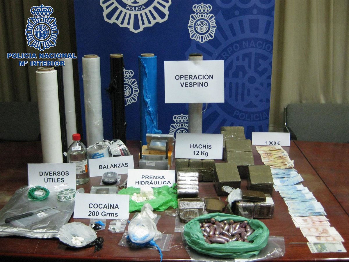 Como resultado de la operación han sido detenidas cinco personas y se han llevado a cabo tres registros domiciliarios donde se han incautado 200 gramos de cocaína, 5 kilogramos de hachís, una prensa hidráulica, balanzas de precisión, un vehículo cargado con otros 7 kilos de hachís, así como diversos útiles y efectos para la manipulación, distribución y venta de la sustancia y 1.000 euros en efectivo.