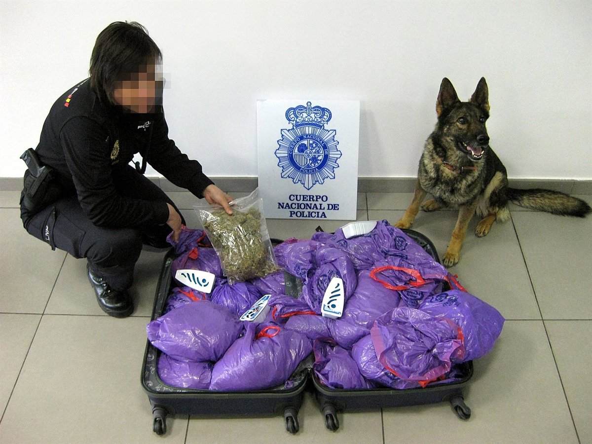 Agentes de la Policía Nacional han detenido a una persona como presunto autor de un delito contra la salud pública, al sorprender al hombre con una maleta en la que llevaba 20 bolsas de plástico con cuatro kilos de marihuana que pretendía transportar en un autobús a Holanda.