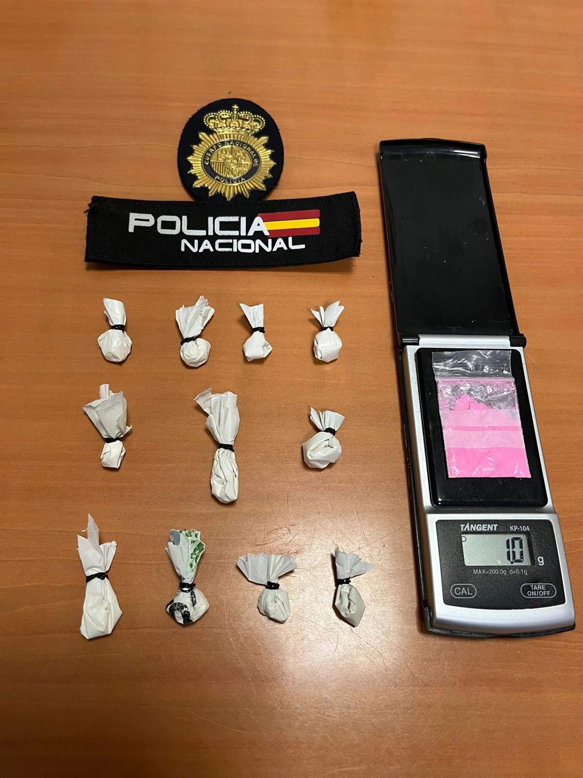 La Policía Nacional ha detenido a dos varones, de 28 y 29 años, en el centro de Zaragoza por llevar más de una decena de dosis de cocaína y 'tusi'. Se les investiga como presuntos autores de un delito contra la Salud Pública y otro de Resistencia y Desobediencia.