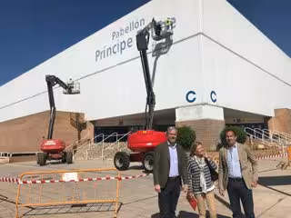 Una par de grúas se han instalado en la cara C del equipamiento deportivo municipal para facilitar a los operarios el acceso a la fachada y proceder al lijado del nombre, que se igualará al que borró en otro lateral. Posteriormente, se le dará una capa de imprimación para facilitar el repintado, a partir de la semana próxima, y que ambos lados luzcan con el nombre originario, acordado por el pleno del Ayuntamiento en 1986.
