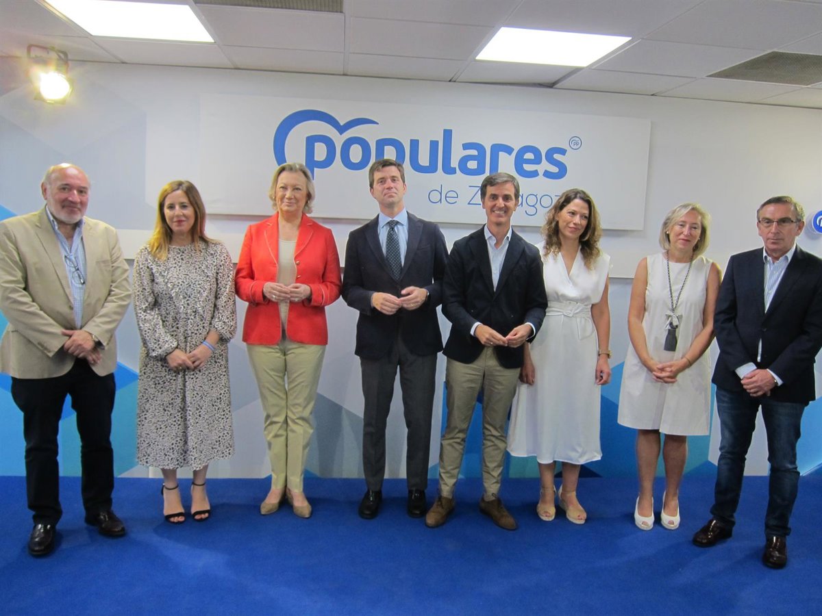 Los candidatos del PP al Congreso y al Senado por Zaragoza en las elecciones del próximo 23 de julio, junto con el presidente del PP Zaragoza, Ramón Celma. - EUROPA PRESS