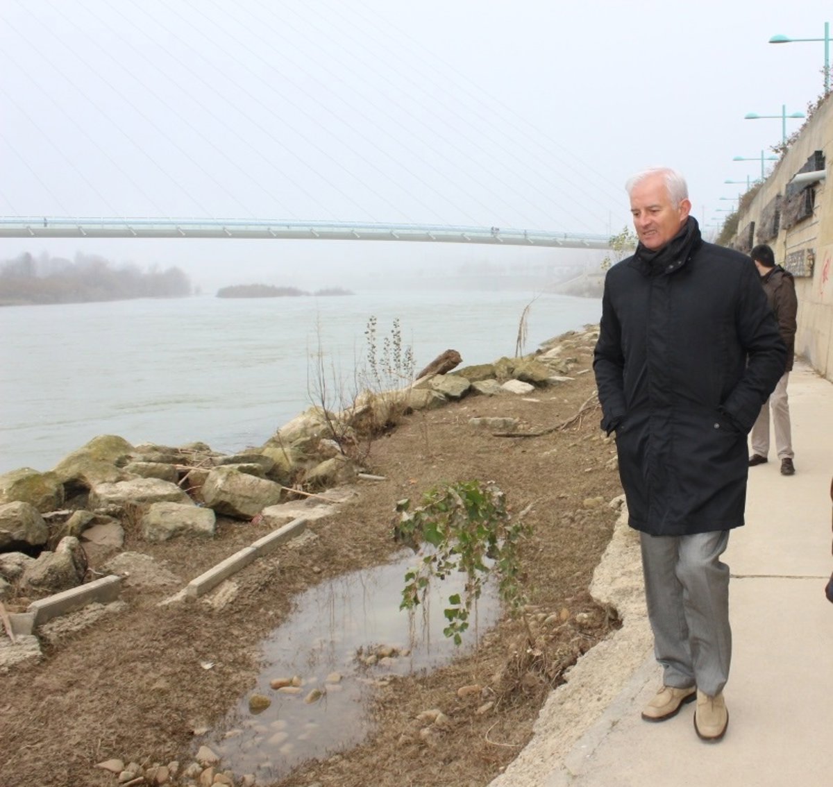 Suárez ha visitado esa zona este viernes, 9 de enero, y ha señalado "el evidente problema de limpieza y mantenimiento" junto al paseo de ribera más próxima al río, entre el puente de La Almozara y la pasarela del Voluntariado.