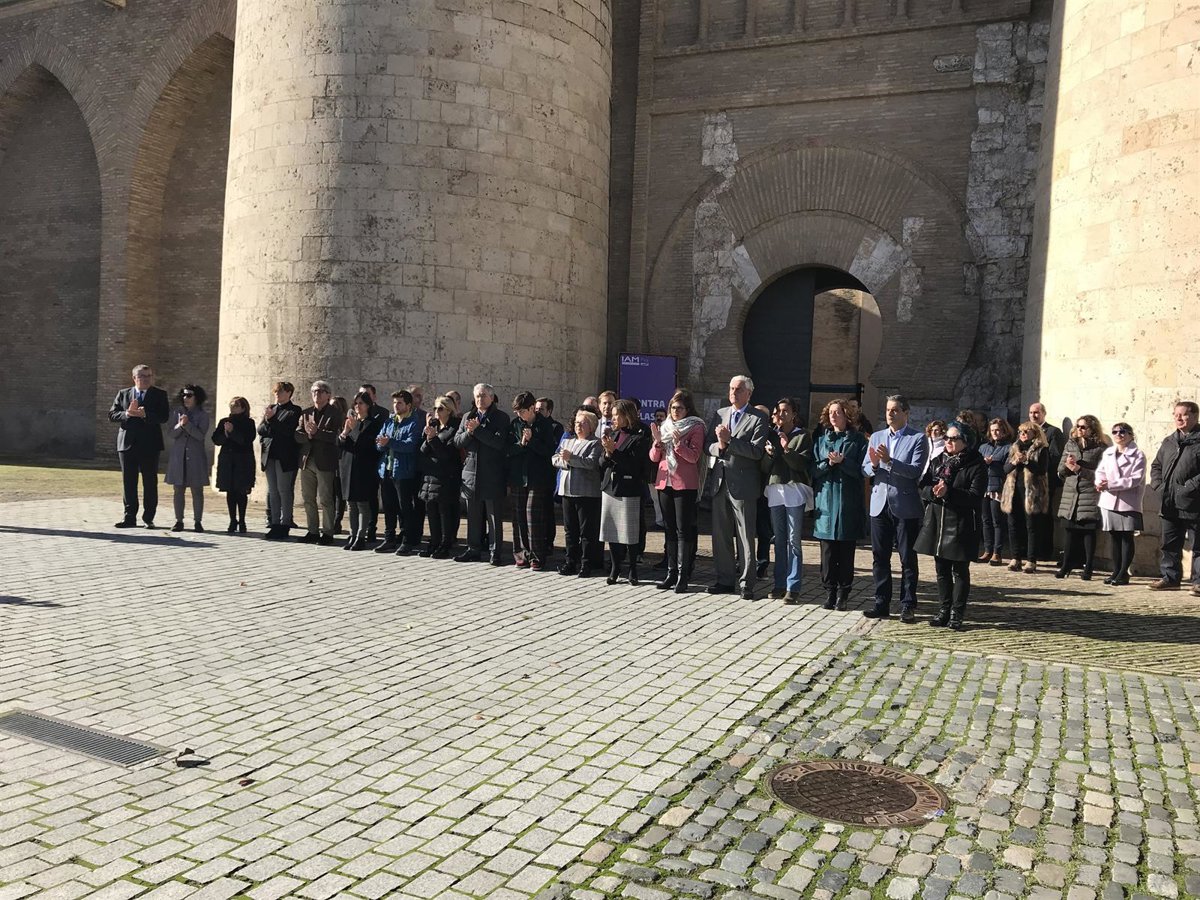 A las puertas del Palacio de La Aljafería, ha presidido a mediodía un minuto de silencio en protesta por el asesinato, este domingo en Monzón (Huesca), de Rokhaya D., de 42 años, a manos de su expareja, acto en el que han participado representantes de todos los partidos representados en las Cortes autonómicas y personal de la institución.