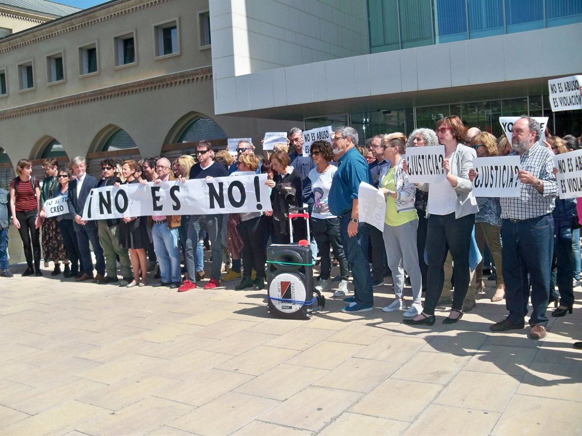 Barba ha asistido este viernes a una concentración convocada por los sindicatos del Ayuntamiento de Zaragoza ante la puerta de edificio municipal del Seminario contra el fallo dictado por la Audiencia de Navarra, que condena a nueve años de cárcel por un delito continuado de abuso sexual a los cinco miembros de 'La Manada' en los San Fermines de 2016, pero les absuelve del delito de agresión sexual.