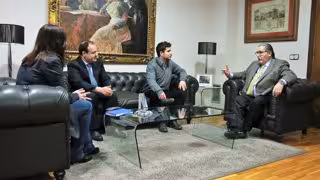 El presidente de la Cámara de Comercio, Industria y Servicios de Zaragoza, Manuel Teruel, ha recibido este lunes al secretario general de Podemos en Aragón, Nacho Escartín, visita que responde a una invitación del primero para abrir una vía de diálogo y colaboración que se materialice en propuestas parlamentarias de contenido económico.