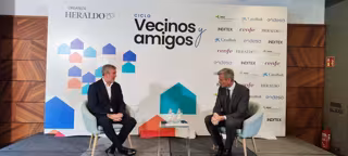 El presidente de Canarias, Fernando Clavijo, en el foro 'Amigos y Vecinos' organizado por Heraldo de Aragón, junto al director de Heraldo, Mikel Iturbe. - EUROPA PRESS