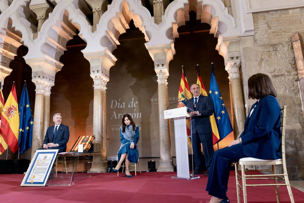 El presidente del Club Natación Helios, José María Esteban Celorrio, ha recogido este miércoles, 23 de Abril, la medalla de las Cortes de Aragón de 2025 de manos de la presidenta del Parlamento autonómico, Marta Fernández, en el acto institucional de celebración del Día de la Comunidad Autónoma, en el Palacio de La Aljafería. En un breve discurso, ha destacado "los cien años de compromiso con el deporte, la salud, la ciudad, Aragón y el río Ebro".